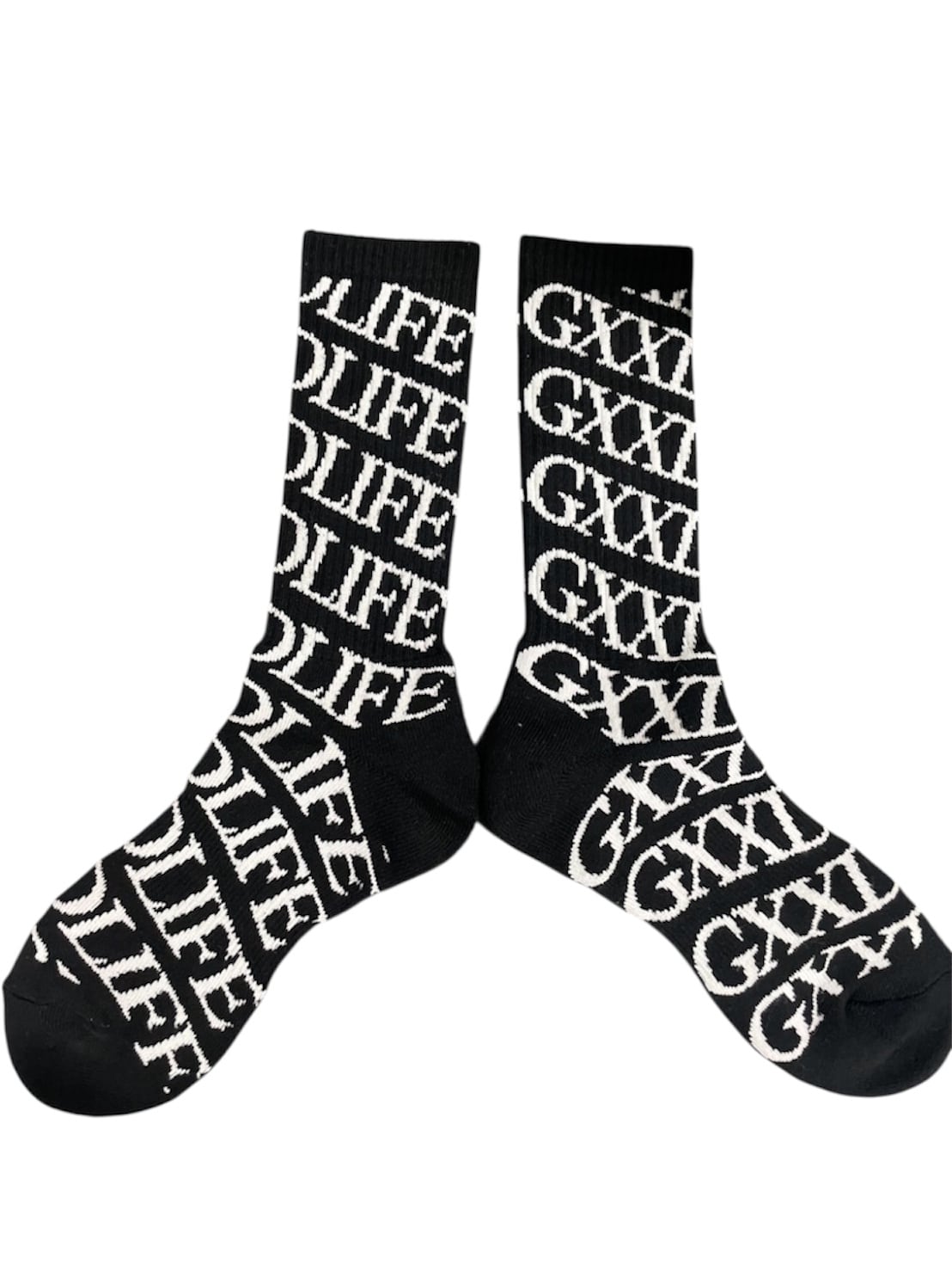 GXXDLIFEのロゴが総柄で編み込まれており存在感抜群のソックスとなっております。